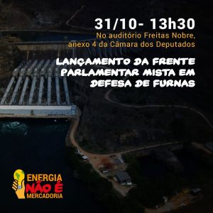 Todo o complexo de Furnas está ameaçado pela proposta de privatização do governo federal que pretende entregar à iniciativa privada a Eletrobras e suas subsidiárias por cerca de R$ 20 bilhões. Assim, para barrar a venda da estatal, nesta terça-feira, 31, será realizado, na Câmara dos Deputados, o Lançamento da Frente Parlamentar Mista em Defesa de Furnas.