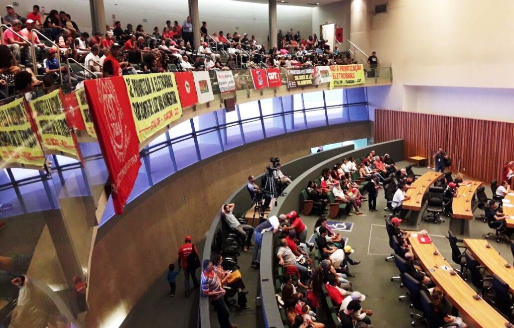 Na luta por uma política pública e nacional para o setor elétrico brasileiro, na sexta-feira, 24, o plenário da Câmara Legislativa do Distrito Federal lotou com a presença de dirigentes sindicais, eletricitários e movimentos populares, que discutiram em audiência pública os impactos da privatização da Eletrobras para a sociedade.