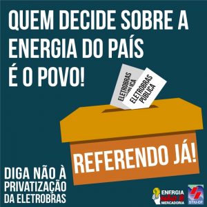 O destino da Eletrobras poderá ser decidido pela população brasileira. Para isso, a Câmara dos Deputados deve votar o Projeto de Decreto Legislativo Nº 948, de 2001, que submete a privatização da Eletrobras e suas subsidiárias a referendo popular. Com o intuito de acelerar a votação, dirigentes sindicais estão requerendo, com o apoio dos deputados federais, regime de urgência para a apreciação do PDC no Plenário da Casa.