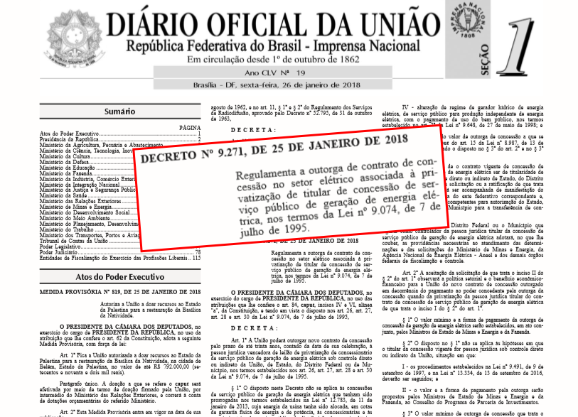 De acordo com o decreto, o novo contrato de outorga beneficiaria a pessoa jurídica vencedora de leilão de privatização de concessionário de serviço público de geração de energia elétrica sob controle direto ou indireto da União, de estado, do Distrito Federal ou de município.