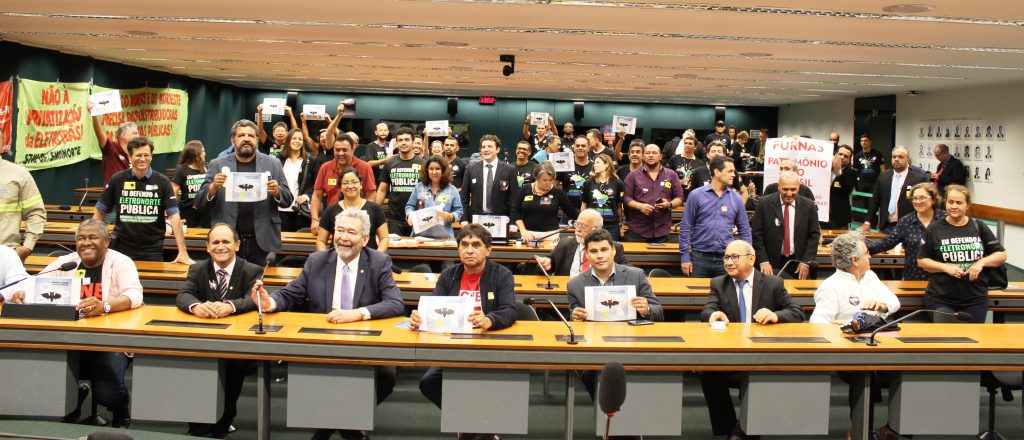 Ao coro de “se privatizar o Brasil vai apagar”, deputados e trabalhadores do sistema Eletrobras participaram nesta quarta-feira (21) do lançamento da Frente Parlamentar em Defesa das Distribuidoras de Energia Elétrica, ameaçadas pelo pacote de privatização do governo. Além disso, com o plenário dois da Câmara lotado, foi apresentado o requerimento, com 260 assinaturas, do Projeto de Decreto Legislativo 948, de 2001, que condiciona a privatização da Eletrobras a referendo popular.