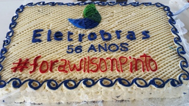 As trabalhadoras e trabalhadores de Furnas na subestação Brasília Sul comemoraram nesta segunda-feira (11) os 56 anos da Eletrobras. Com irreverência, a categoria cantou parabéns e pediu a saída do presidente da empresa, Wilson Pinto, um dos responsáveis pelo processo de privatização da maior empresa de energia elétrica da América Latina.