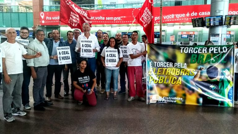 Também pelos estados, a categoria fez manifestações e atos para esclarecer a população sobre a nossa luta contra a privatização da Eletrobras. Um exemplo foi a manifestação dos companheiros de Alagoas no aeroporto de Maceió, nesta terça-feira (19/6).