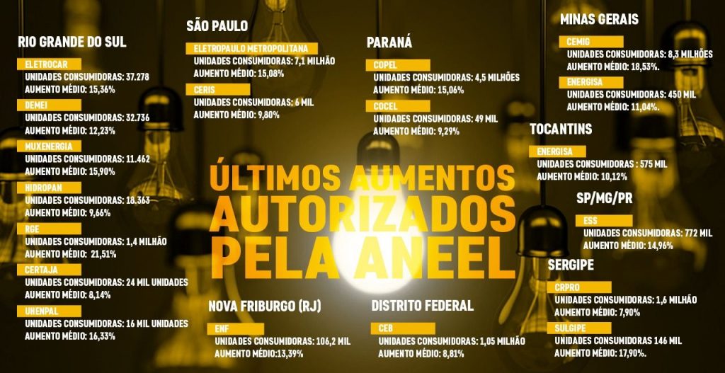 De norte a sul do País, diversas distribuidoras de energia reajustaram os valores das contas. Milhões de famílias de São Paulo, Rio de Janeiro, Minas Gerais, Paraná, Rio Grande do Sul, Tocantins, Sergipe e Distrito Federal já estão pagando bem mais caro pela energia consumida.