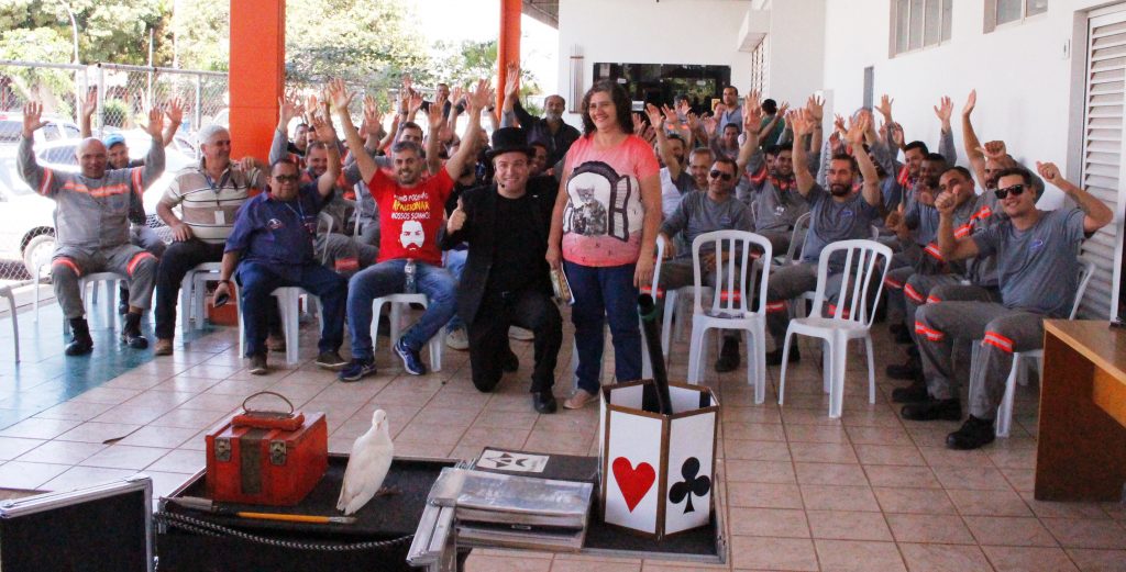 Os trabalhadores participaram de um aulão de ginástica laboral. Além de se divertirem com um show de mágicas e sorteio de brindes.