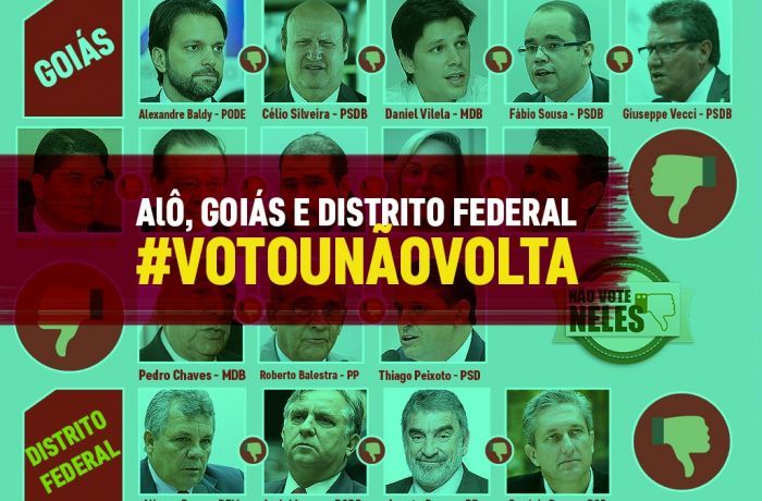 A Campanha #Votou NãoVolta do Portal CUT lembra os trabalhadores e trabalhadoras que a maioria dos deputados federais do Distrito Federal e de Goiás votou uma série de medidas que retirou direitos sociais e trabalhistas, como a reforma Trabalhista, a terceirização, a entrega do pré-sal e a PEC do Teto dos Gastos Públicos, também conhecida como PEC da Morte, que congelou por 20 anos os investimentos em áreas fundamentais como saúde e educação.