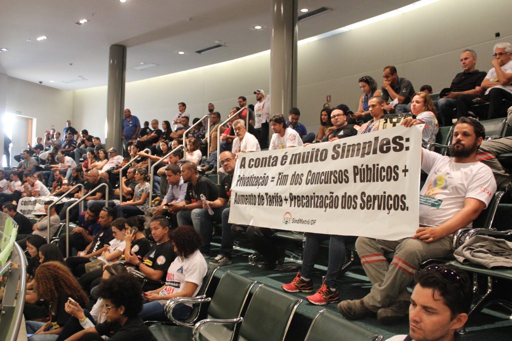 O plenário da Câmara Legislativa do Distrito Federal ficou lotado, na quinta-feira (9), com a presença de trabalhadores e trabalhadoras da CEB, Caesb, BRB e Metrô, contrários à privatização das estatais. Em Comissão Geral, convocada pelo deputado Chico Vigilante (PT), dirigentes sindicais e especialistas dos setores debateram os efeitos da venda das empresas para o desenvolvimento econômico e social da cidade.