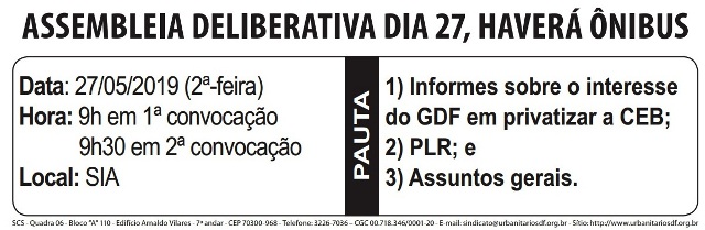 Em meio à perplexidade causada por esse processo, a categoria avisa que vai à luta em defesa da CEB pública e contra a mercantilização da distribuição da energia elétrica e de qualquer outro serviço público.