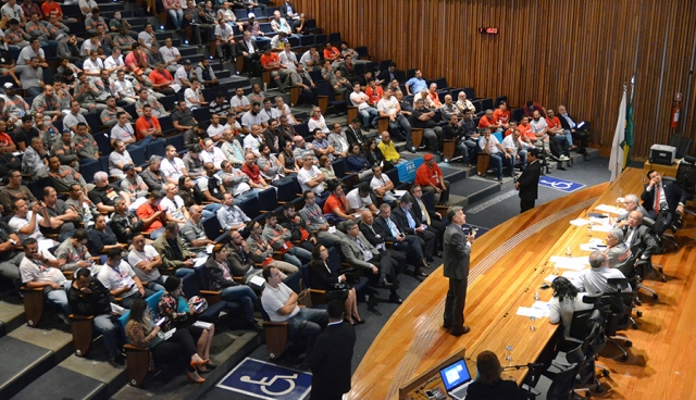 Trabalhadores reunidos na Câmara Legislativa do Distrito Federal assistem o ex-diretor Mauro Martinelli apresentar motivos contra a privatização da CEB (foto: CEB)