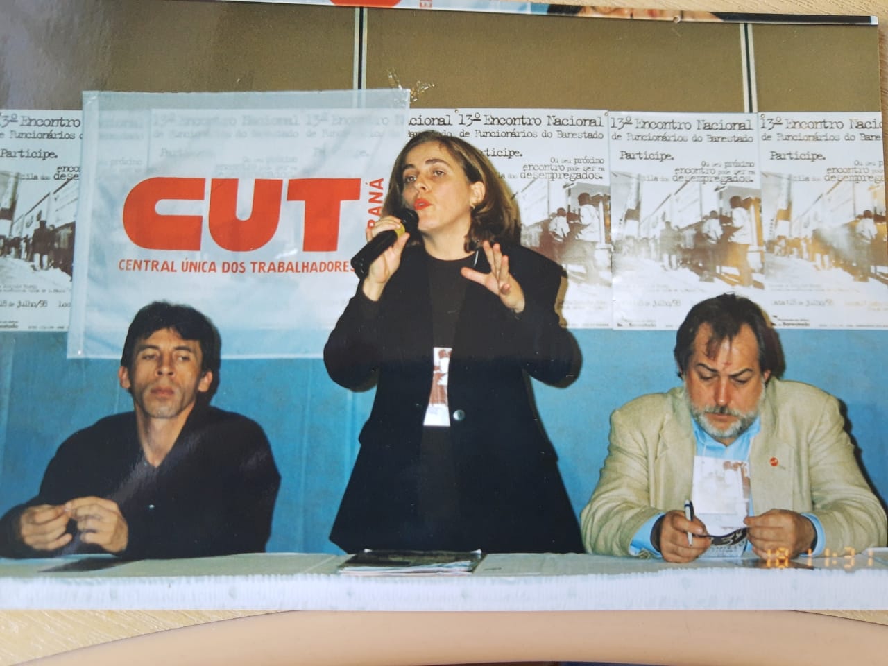 Marisa é aposentada e após anos de luta e militância em defesa dos trabalhadores bancários e das lutas sociais, se despede formalmente de seu vínculo com o Banestado nesta data que marca os 19 anos de privatização.