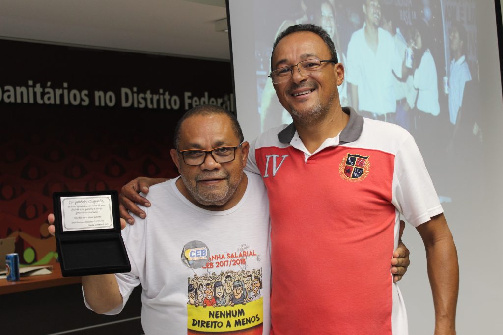 A direção e trabalhadores do STIU-DF prestaram uma homenagem e entregaram uma placa de agradecimento pela fundamental contribuição de Chiquinho na luta em defesa da categoria eletricitária, fortalecimento da entidade e na construção de um país justo, igualitário e fraterno.