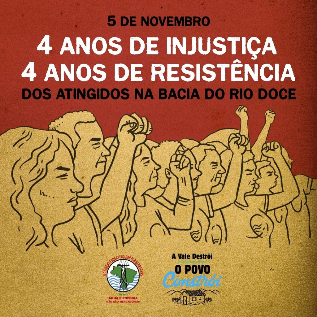 A Jornada de Luta dos Atingidos “A Vale Destrói O Povo Constrói”, vai de outubro à janeiro marcando quatro meses de luta contra a lama. A programação de luta acontecerá em Minas Gerais e no Espírito Santo, lembrando a vivência do povo interrompida pela empresa Vale. O ponto alto será a construção de uma casa, para mostrar que as casas que a Fundação Renova, nesses quatro anos, não entregou para os atingidos em Mariana, será construída pelo povo, como símbolo de luta e resistência a essa violação de direitos.