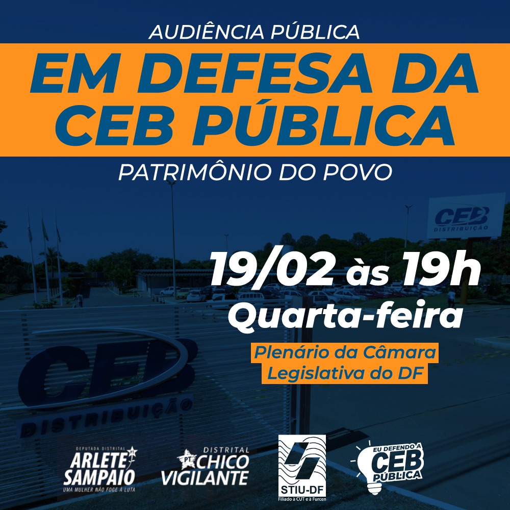 Na quarta-feira (19), às 19h, a Câmara Legislativa do DF (CLDF) vai promover uma audiência pública para debater a situação da CEB, bem como os riscos de uma eventual privatização da empresa para a população do Distrito Federal.
