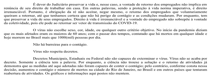 Trecho final da decisão proferida pelo Juiz do Trabalho, Excmo. Jose Mateus Alexandre Romano.