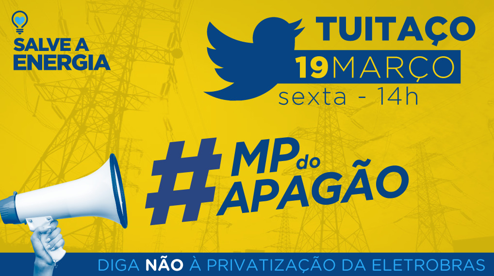 Para dar sequência às ações de enfrentamento ao desmonte da Eletrobras, amanhã, 19, será realizado um Tuitaço contra a MP do Apagão. O objetivo é denunciar nas redes sociais o sucateamento da empresa e alertar a população sobre os impactos dessa medida.