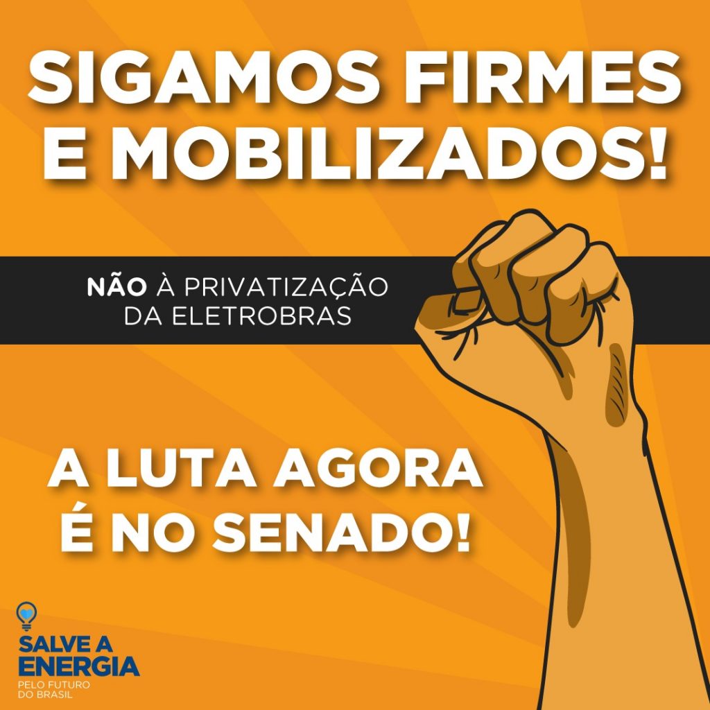 A nossa mobilização continua no Senado e alertamos que a resistência vai ser firme, em defesa da Eletrobras pública, da nossa segurança energética e da soberania nacional.