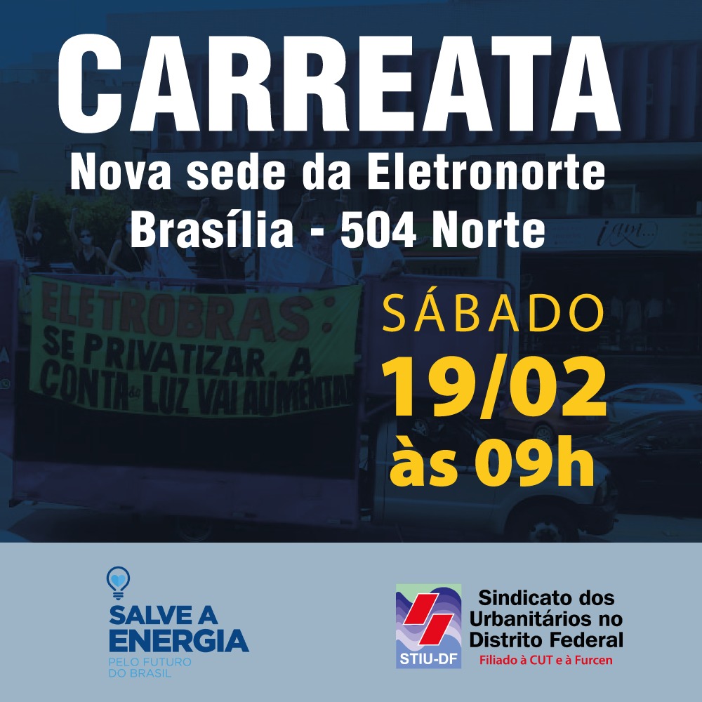 Em carreata, os trabalhadores e trabalhadoras vão denunciar as irregularidades e impactos da entrega da estatal à iniciativa privada. A concentração é a partir das 9h, em frente à sede da Eletronorte na quadra 504, da Asa Norte.
