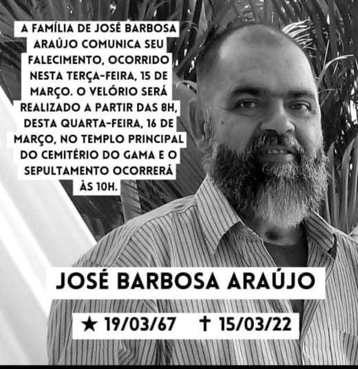 O STIU-DF registra o seu mais profundo pesar pelo falecimento do companheiro José Barbosa Araújo, que trabalhou na CEB do Gama e se desligou da empresa no PDV de março/2021.