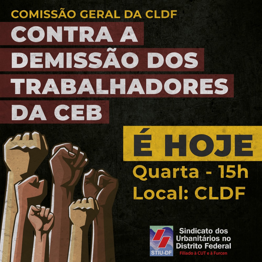 Na tarde desta quarta-feira (20), às 15h, será realizada na Câmara Legislativa do Distrito Federal a Comissão Geral para debater as ações e desafios para o enfrentamento da situação dos empregados públicos da extinta Companhia Energética de Brasília (CEB Distribuição), conforme requerimento protocolado na Casa pela deputada Arlete Sampaio (PT).