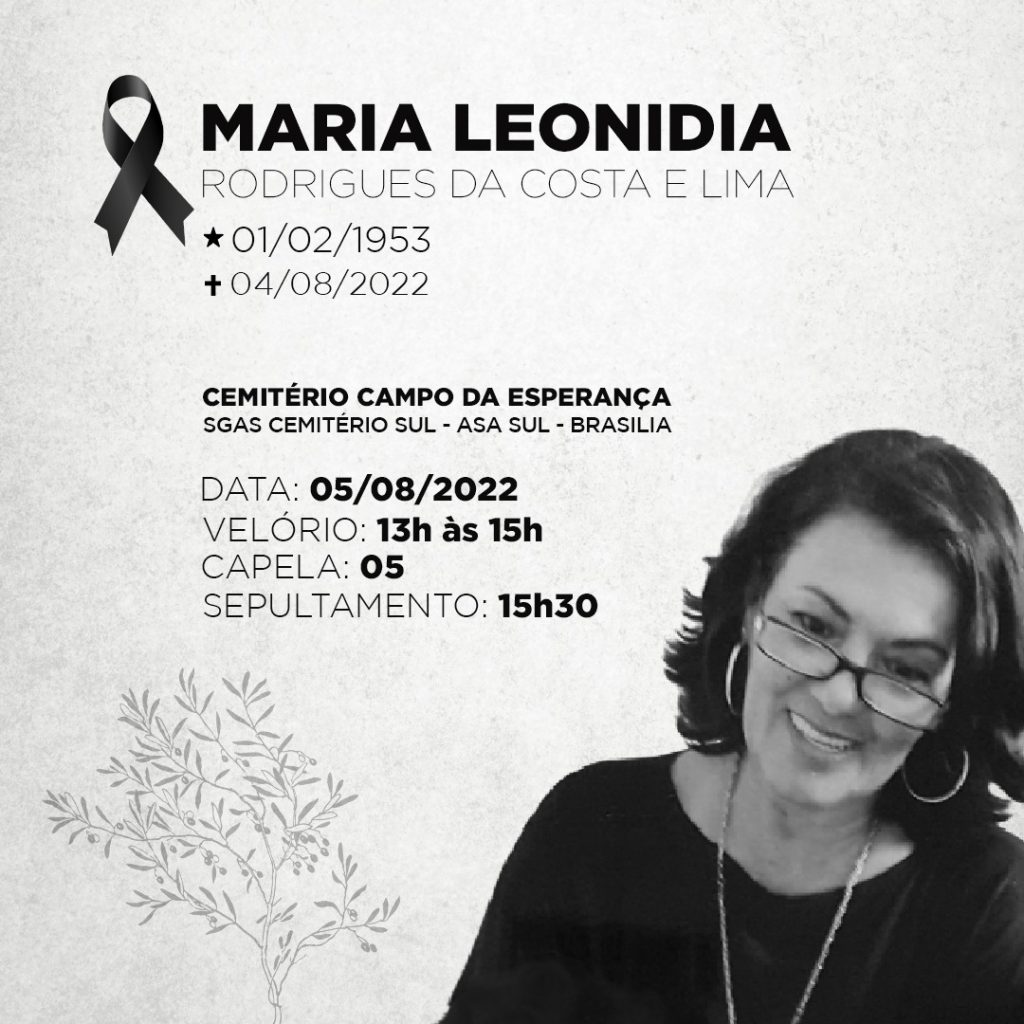 É com profundo pesar que o Sindicato dos Urbanitários no DF (STIU) informa o falecimento de Maria Leonidia Rodrigues da Costa e Lima, mãe do presidente da CUT-DF, Rodrigo Rodrigues.