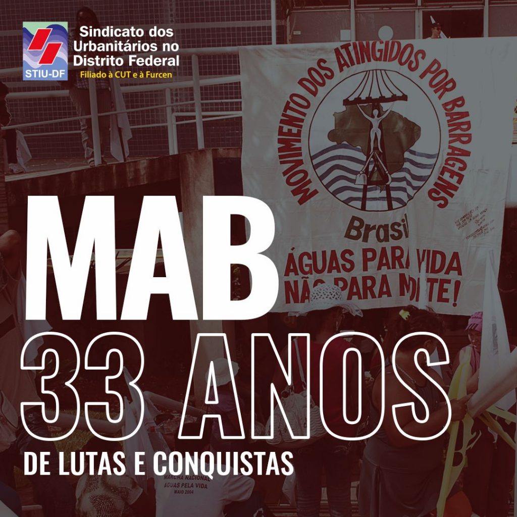 Hoje, 14 de março, o Sindicato dos Urbanitários do Distrito Federal (STIU-DF) vem a público expressar sua profunda admiração e irrestrito apoio ao Movimento dos Atingidos por Barragens (MAB), que celebra 33 anos de lutas e conquistas significativas na defesa dos direitos das populações atingidas por barragens em todo o Brasil.