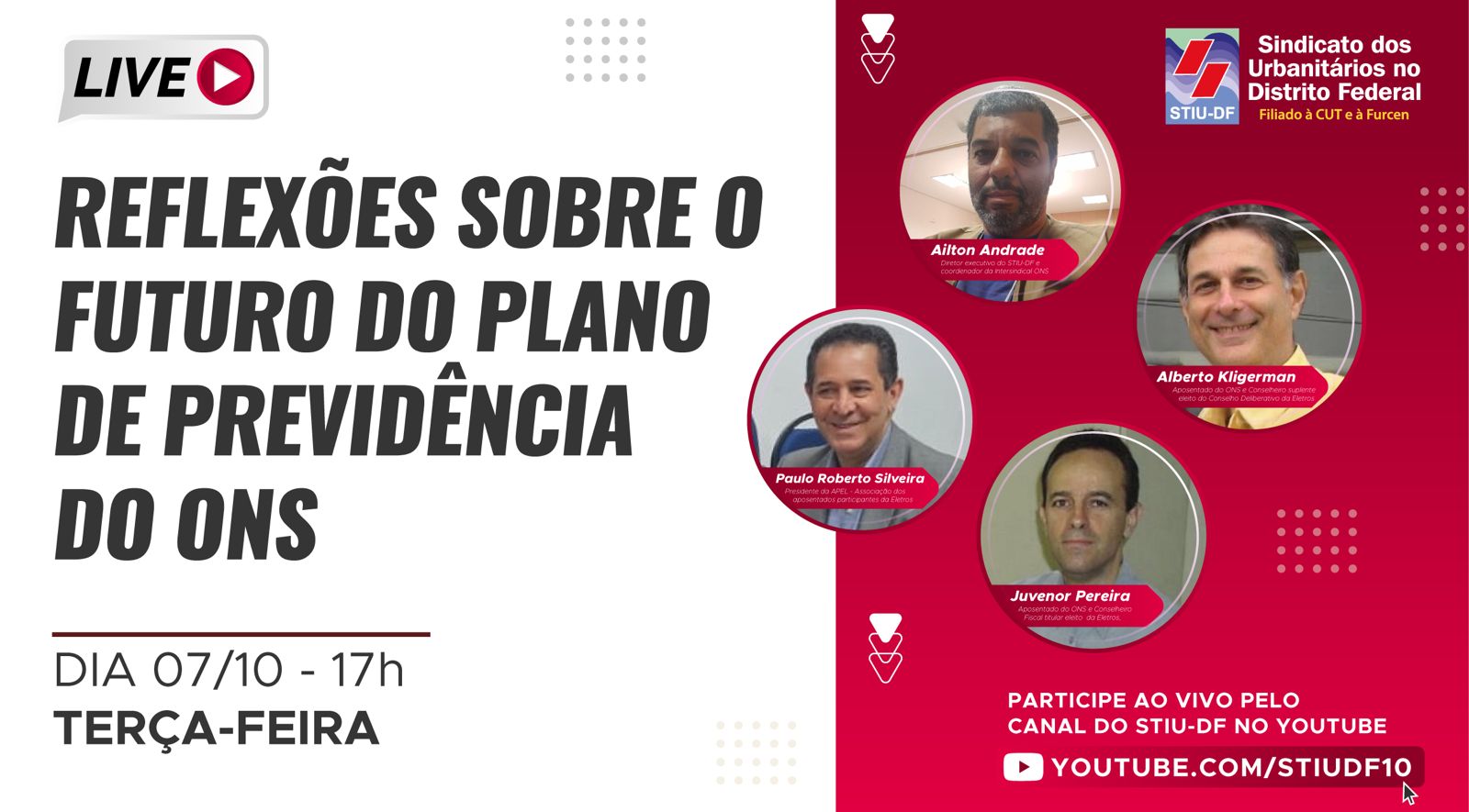 O Sindicato dos Urbanitários no DF (STIU-DF) convida os trabalhadores, trabalhadoras e aposentados(as) do Operador Nacional do Sistema Elétrico (ONS) para a live “Reflexões sobre o Futuro do Plano de Previdência do ONS”, que será realizada na próxima terça-feira (7), às 17h, com transmissão via YouTube.