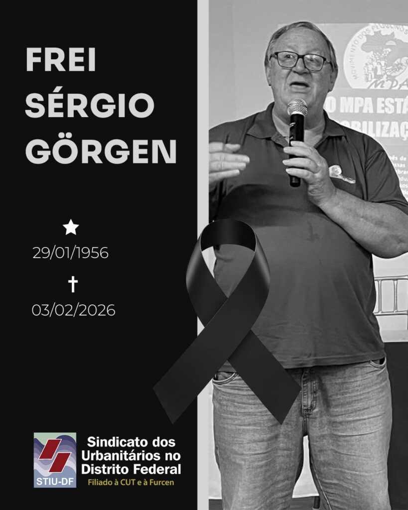 O Sindicato dos Urbanitários no Distrito Federal (STIU-DF) informa, com profundo pesar, o falecimento de Frei Sérgio Antônio Görgen, dirigente do Movimento dos Pequenos Agricultores (MPA).