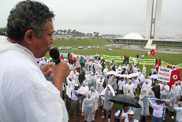 Os manifestantes se concentraram em frente à Catedral. Em seguida, caminharam pela Esplanada reivindicando a não privatização do saneamento. Depois pararam em frente ao Congresso Nacional e protestaram contra a intenção do governo federal de patrocinar essa iniciativa.