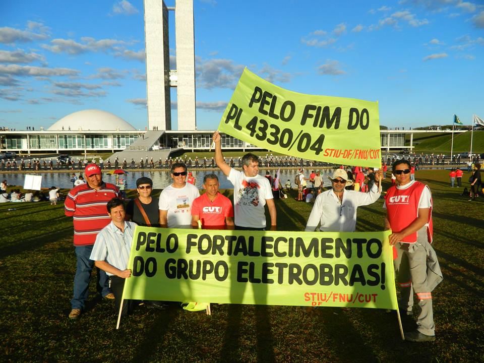 O Dia Nacional de Luta também contou com a participação da classe trabalhadora eletricitária. Diversas categorias marcharam na tarde desta quinta-feira (11) rumo ao Congresso Nacional. Todas querem o fim do fator previdenciário e a retirada do projeto de lei que regulamenta a prestação de serviços terceirizados. Mas as reivindicações não param por aí.