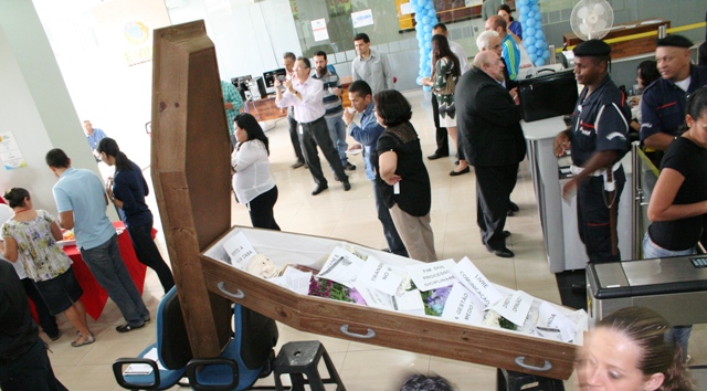 O caixão e as flores foram montados na entrada principal da Eletronorte. O Sindicato levou artista popular que encenou com bonecos de mamulengo a falta de compromisso da direção da empresa com a categoria. Antes do café da manhã, vários trabalhadores e trabalhadoras registraram inúmeras queixas.
