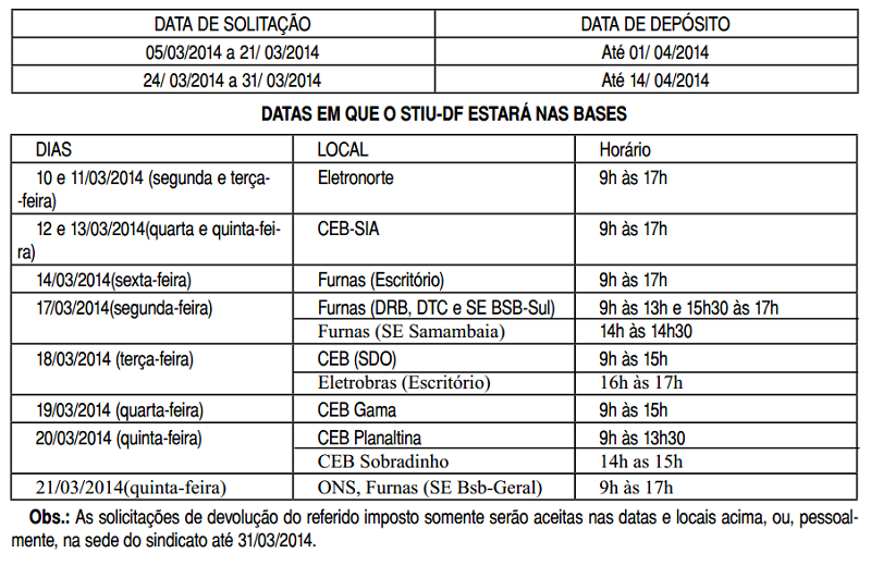 As datas para solicitação da devolução e os dias em que a diretoria sindical estará nas empresas também foram informadas. Fique ligado!