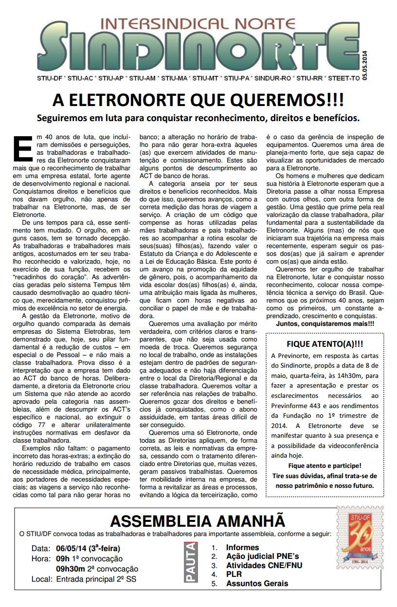 ELETRONORTE Eletronorte - Notícias Gerais A ELETRONORTE QUE QUEREMOS!!! 05/05/2014 706 Compartilhar no Facebook Tweet tweet VISUALIZAR ARQUIVO EM PDF