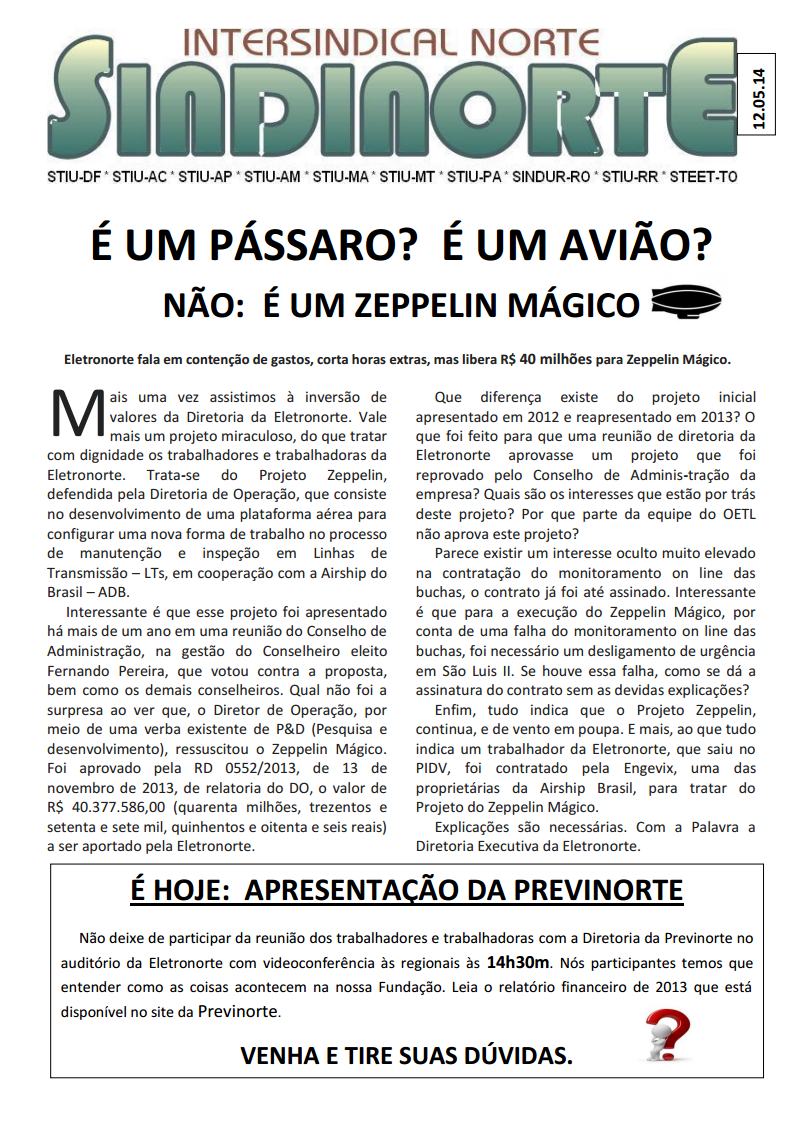 ELETRONORTE Eletronorte - Notícias Gerais É UM PÁSSARO? É UM AVIÃO? NÃO: É UM ZEPPELIN MÁGICO 12/05/2014 515 Compartilhar no Facebook Tweet tweet VISUALIZAR ARQUIVO EM PDF