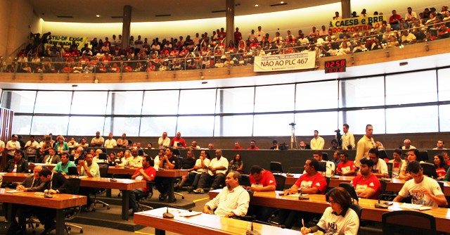 Os trabalhadores e trabalhadoras da CEB, Caesb e BRB lotaram de novo as galerias e o plenário da Câmara Legislativa nesta quarta-feira (17) para reivindicar o arquivamento ou a retirada do PL 467/15, de autoria do GDF, que propõe a venda de ações das empresas públicas de Brasília, abrindo caminho para privatizações.