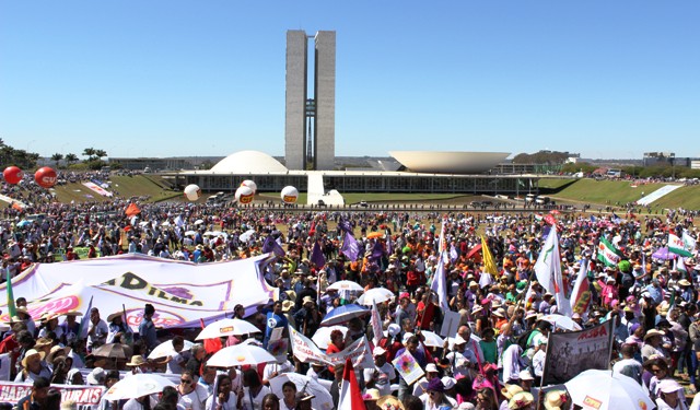 Na manhã desta quarta-feira (12), trabalhadoras do campo e da cidade de todas as regiões do país caminharam em um ato pela Esplanada dos Ministérios. Nesta 5ª edição da Marcha das Margaridas, o objetivo é chamar a atenção para a luta por desenvolvimento sustentável com democracia, justiça, autonomia, igualdade de direitos, liberdade e o fim da violência contra a mulher.
