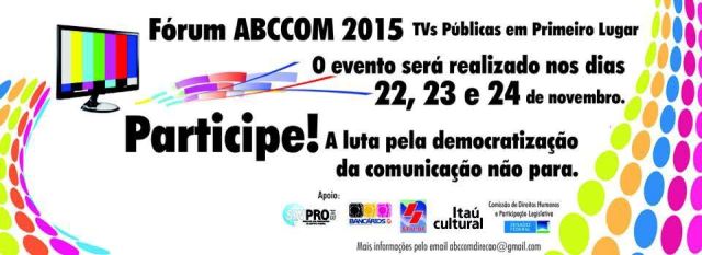 Nos dias 22, 23 e 24 de novembro a Associação Brasileira de Canais Comunitários realiza o Fórum ABCCOM 2015, em Brasília, para discutir sobre a democratização da comunicação, os desafios da comunicação pública e dos direitos humanos na TV aberta e por assinatura, no Canal da Cidadania e na banda larga, entre outros temas.