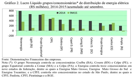 Esses resultados podem ser explicados, de um lado, pelas medidas de “socorro” ao setor, adotadas pelo governo federal em 2014 e pela política setorial de “realismo tarifário” em 2015; de outro lado, pela manutenção do consumo de energia em patamares elevados.