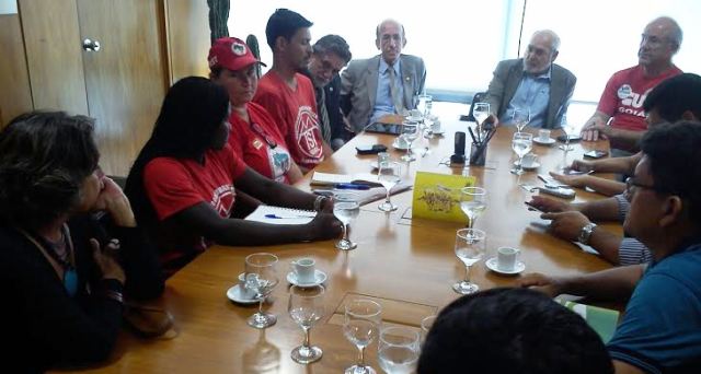 Após grande protesto nesta terça-feira (12), na Praça dos Três Poderes e em frente ao Ministério de Minas e Energia (MME), dirigentes sindicais e representantes de movimentos sociais forçaram um encontro com o ministro chefe em exercício da Secretaria de Governo da Presidência, Luiz Azevedo. Na reunião, trataram do processo de privatização do setor elétrico.