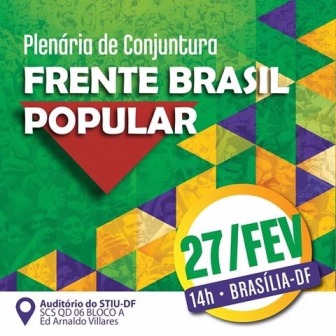 Com o objetivo de unificar e debater as lutas dos movimentos sociais, culturais e sindicais do Distrito Federal, a Frente Brasil Popular de Brasília realiza plenária de mobilização e análise de conjuntura a partir das 14h do próximo sábado (27), no auditório do Sindicato dos Urbanitários (Stiu-DF), localizado no Setor Comercial Sul (SCS, Qd 06, bloco A, Ed. Arnaldo Vilares).