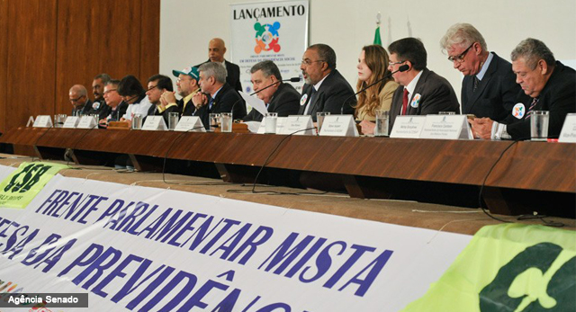 Nesta terça-feira (31), a Frente Parlamentar Mista em Defesa da Previdência Social foi recriada, no auditório do Senado Federal. Os parlamentares da Frente atuarão em prol dos direitos sociais, de uma gestão mais transparente e do equilíbrio financeiro da Previdência Social.