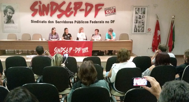 Parlamentares, trabalhadores e trabalhadoras, representantes da sociedade, técnicos de entidades e lideranças sindicais de várias categorias, entre elas o STIU-DF, participaram na noite desta terça-feira (8), no Sindicato dos Servidores Públicos Federais no DF (Sindsep), de debate organizado pela Frente Brasil Popular sobre os impactos danosos da PEC 55 (241) para a população. Discutiram ainda a inconstitucionalidade da matéria.