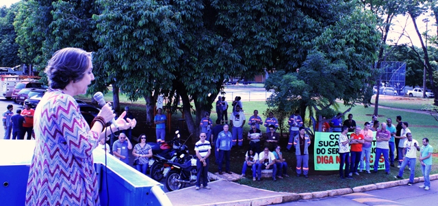 Como parte da agenda de atividades para o Dia Nacional de Greve em defesa dos direitos sociais e trabalhistas, a categoria eletricitária da CEB realizou, na manhã desta sexta-feira (11), uma assembleia geral em frente à Companhia.