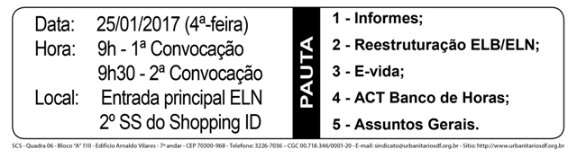 O STIU-DF convoca os trabalhadores e trabalhadoras da Eletronorte para importante assembleia geral deliberativa, conforme a seguir: