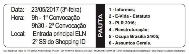 O STIU-DF convoca os trabalhadores e trabalhadoras da Eletronorte para importante assembleia geral nesta terça-feira, 23, conforme a seguir:
