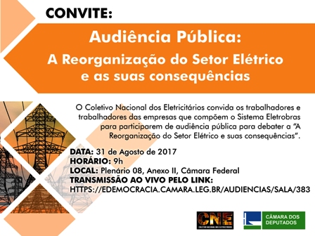 Para debater e apontar alternativas a essa medida desastrosa, o STIU-DF convoca toda a categoria para participar de audiência pública sobre “A Reorganização do Setor Elétrico e as suas consequências” (veja anexo). Esta audiência é fruto das interlocuções das entidades sindicais junto à Câmara dos Deputados.